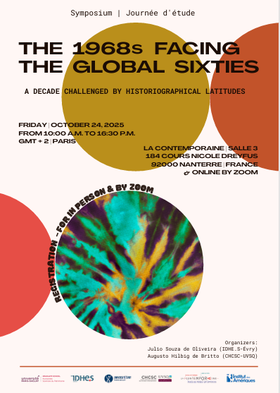 The 1968s facing the Global Sixties: A decade challenged by historiographical latitudes 24 octobre 2025 Journée d'études organisée par Julio Souza de Oliveira (IDHE.S-Évry) et Augusto Hilbig de Britto (CHCSC-UVSQ). | |