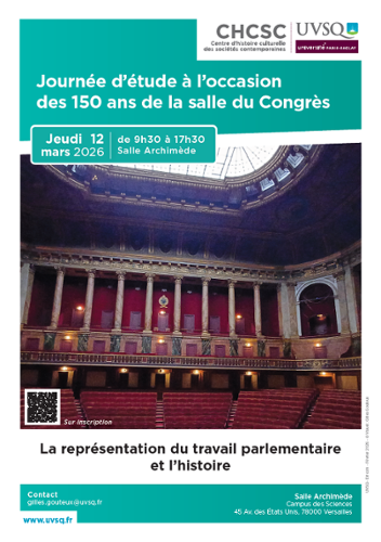 | La représentation du travail parlementaire et l'histoire 12 mars 2026 Journée d'études organisée par Gilles Malandain et Gilles Gouteux, à l'occasion des 150 ans de la salle du Congrès. | |