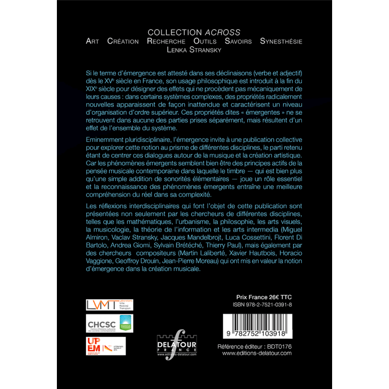 Eminemment pluridisciplinaire, l’émergence invite à une publication collective pour explorer cette notion au prisme de différentes disciplines, le parti retenu étant de centrer ces dialogues autour de la musique et la création artistique. Car les phénomènes émergents semblent bien être des principes actifs de la pensée musicale contemporaine dans laquelle le timbre — qui est bien plus qu’une simple addition de sonorités élémentaires — joue un rôle essentiel et la reconnaissance des phénomènes émergents entraîne une meilleure compréhension du réel dans sa complexité.