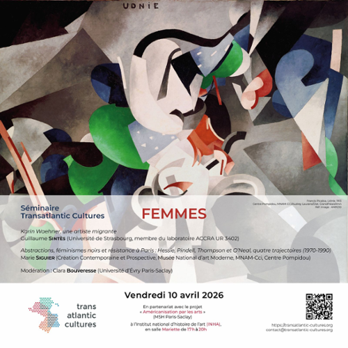 | Séminaire Transatlantic Cultures - Femmes 10 avril 2026 Séance du 10 avril 2026, de 17h à 20h. En partenariat avec le projet « Américanisation par les arts » (MSH Paris-Saclay). | |